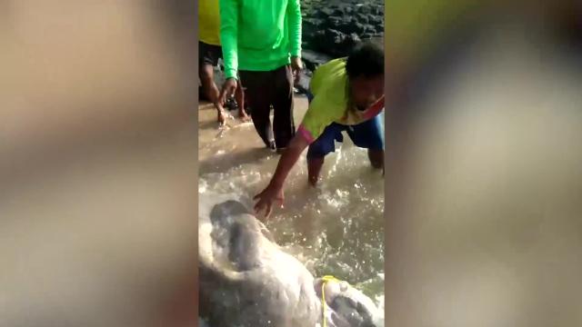 Pairin Boonkumjun and her sister were walking alongside the brownish body of water when they saw the creature fighting to stay afloat in Phetchaburi province on October 21. 2022-10-24 15:49:08