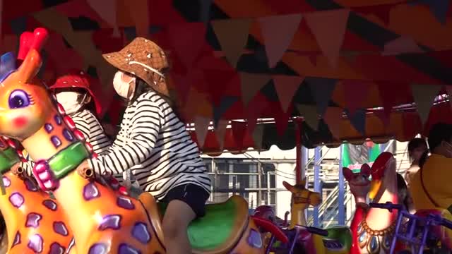 Footage shows children enjoying the fairground rides before adults laid flowers and lit candles at a highly revered chedi, which was wrapped in a red cloth and illuminated in stunning white lights for the annual event. 2022-10-24 14:52:43