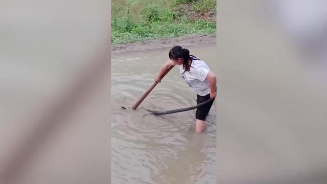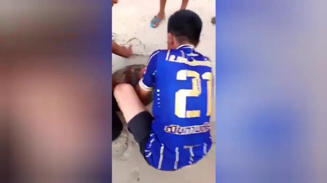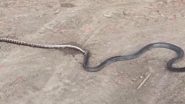 Footage shows the venomous serpent unsheathing the smaller dead snake from its gut as volunteers cornered it in a forest near a village in Phetchabun province on May 25. 2022-10-20 20:30:36