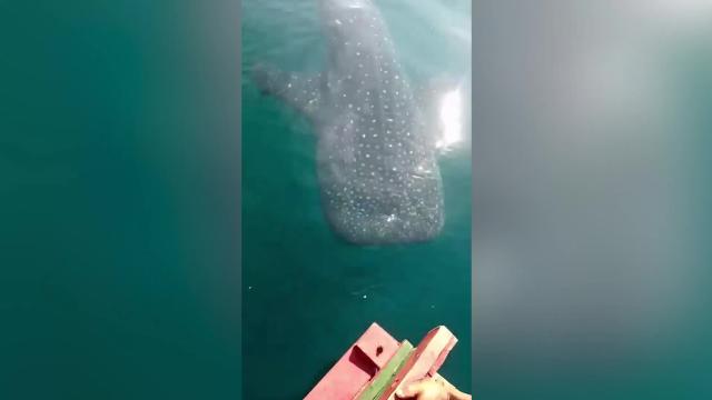 Footage shows the enormous 16ft-long marine mammal's figure moving around the vessel off the coast of Age Saung beach, on October 19. 2022-10-20 20:14:31