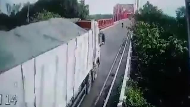 A 12-wheeler and a smaller elf truck were passing through the Wawa steel bridge when its middle portion subsided in Pangasinan province on October 20. 2022-10-21 12:20:03