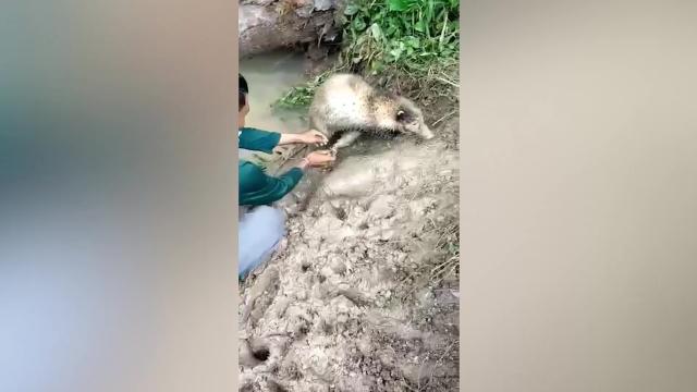 The hungry animal was rooting for earthworms around a muddy pond near a durian farm when when its hind leg was caught in a trap in Nakhon Si Thammarat province, Thailand on June 1 evening. 2022-10-20 20:12:34