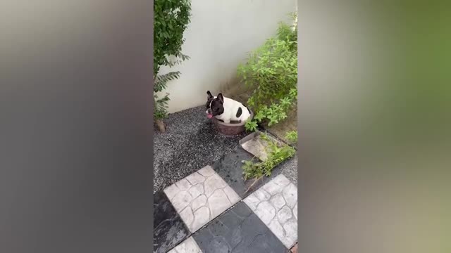 The pooch named Khun-Chang claimed the clay container as its own bathtub and enjoyed a comfortable soak despite the cramped quarters in Bangkok, Thailand, on October 13. 2022-10-20 17:42:56