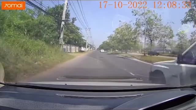 Dashcam footage shows the white pickup hitting driver Natphatsorn Tangkuai's car with its cargo bed on a highway in Nakhon Ratchasima province on October 17. 2022-10-20 17:42:47