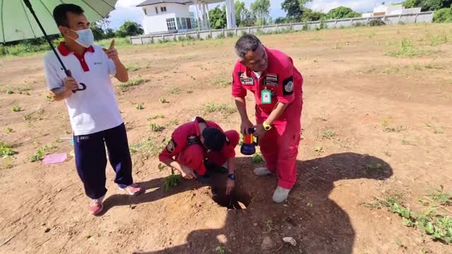 The trio of hapless baby dogs were weakened and covered in dust when they were found by a passer-by lying in the narrow shaft in Chonburi province's Sattahip district on October 9.