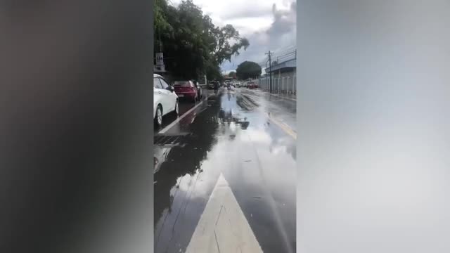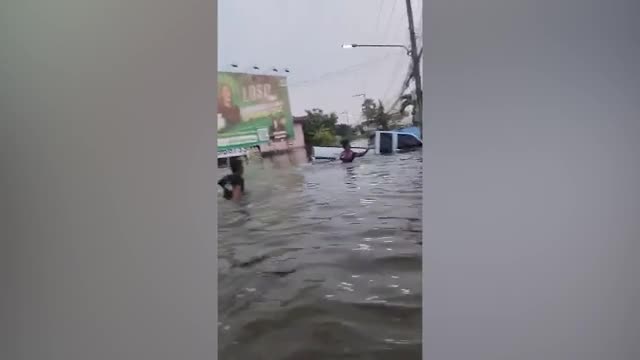 The motorist was trying to drive through the deluge when he was washed away following heavy rain in Ubon Ratchathani, northeast Thailand, on October 13. 2022-10-18 14:59:33