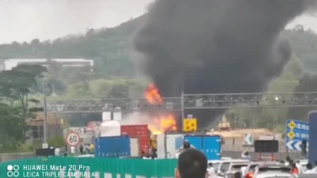 Footage shows the column of smoke wafting up from what appeared to be a burning vehicle on a section of the G15 Shenyang–Haikou Expressway in Guangdong province on October 17. 2022-10-17 16:32:40
