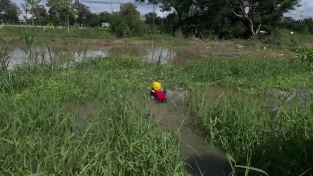The rescuer, Manit Boonprasop, had been assisting flood-stricken villagers in Ang Thong province when a woman approached him asking to save her cat on October 12. 2022-10-13 15:55:19