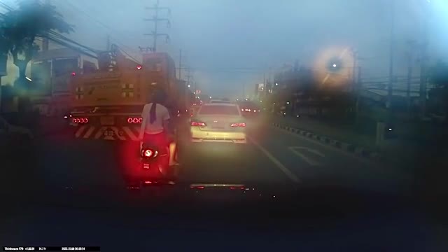 The resident had escaped a fatal crash when motorcycle rider Emerson Tumlos braked his bike just inches from her while she was crossing the street in Pontevedra town, Capiz province on October 3. 2022-10-13 17:38:26