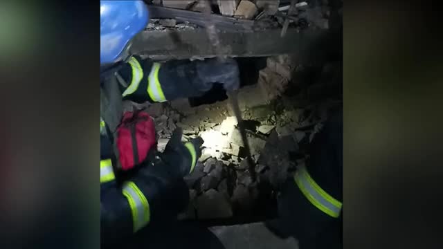 Footage shows resident Kim Dobles partying with family when she stood on the plastic monobloc that slumped in Rizal province, the Philippines on October 9. 2022-10-13 17:06:55