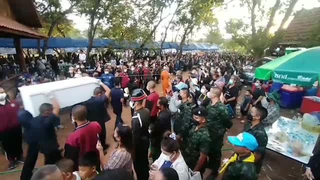Hundreds of grieving mourners led by monks held a funeral procession for the deceased as they marched towards the cremation site in Nong Bua Lamphu province on October 11. 2022-10-12 13:28:40