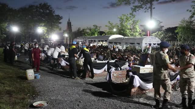 Hundreds of grieving mourners led by monks held a funeral procession for the deceased as they marched towards the cremation site in Nong Bua Lamphu province on October 11. 2022-10-12 13:26:06