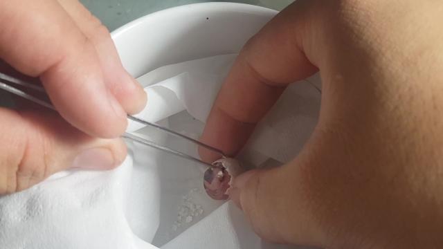 Footage shows the pet owner using a sharp tool to cut a small hole in the wooden structure in Saraburi province, Thailand, on September 4. 2022-09-12 16:47:25