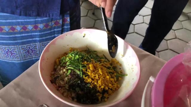 Footage shows the assorted crushed root, bark, and leaves from medicinal plants flattened like a pie on people's bodies before it was lit up in Chiang Mai province on September 8. 2022-09-12 16:48:42