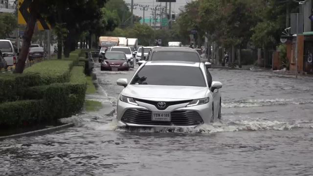 Footage shows people and cars wading through the deluge in the Lat Krabang area of the capital on September 12 shortly before lunchtime. 2022-09-12 17:38:06
