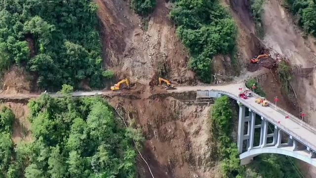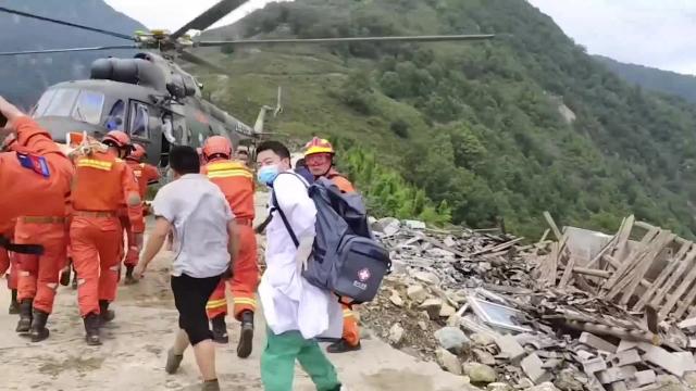 Footage shows emergency services lifting an earthquake victim into the aircraft in Luding County in Sichuan province on September 6. Landslides reportedly cut off access to several villages via land, forcing responders to use the helicopters instead.