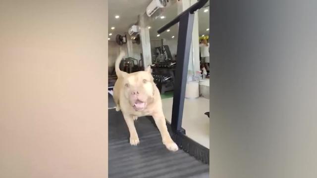 The stocky pooch named Anthony is seen trotting on the treadmill's belt while his owner Weerapol Monthaa encouraged him to go faster in Trat province on August 25. 2022-09-10 15:16:19