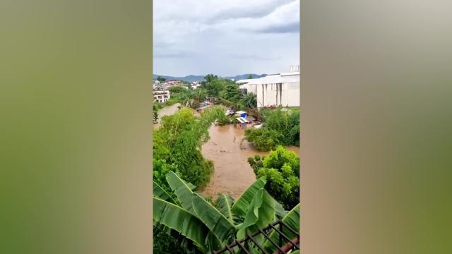 The structure was dragged from the riverbanks by the surging muddy torrents amid pounding tropical rain in the Talamban area of Cebu City on Friday afternoon September 9. 2022-09-10 16:26:08