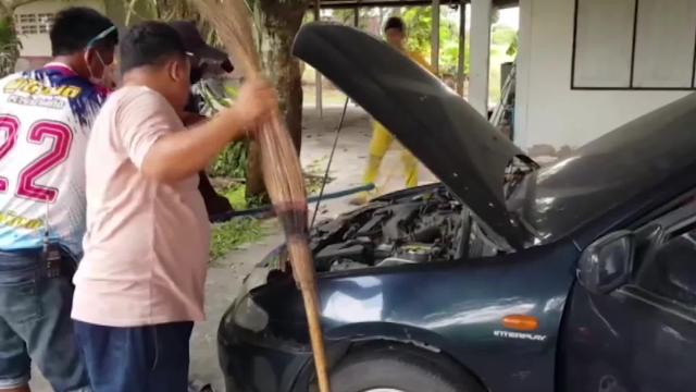 The venomous serpent was discovered by homeowner Surinthon Chitsong, 43, who was alerted by her pet dogs' incessant barking in Chonburi province on August 30.
