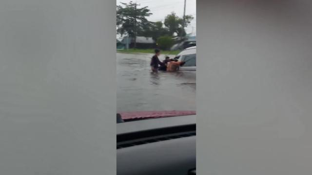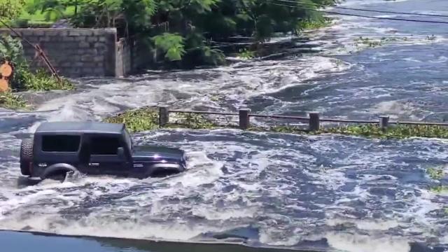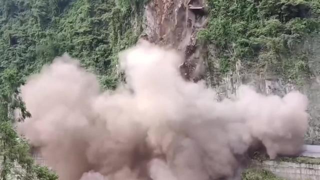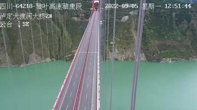 Footage released by the Sichuan Highway Department shows how the Xingkang Bridge linking Sichuan province to Tibet rattled over the Dadu River while cars crossed on September 5.