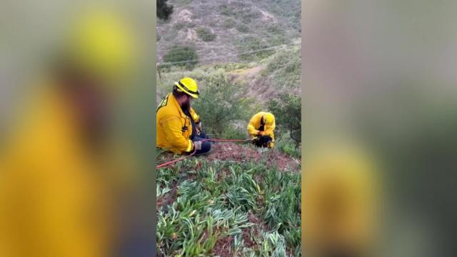 Hobo, an eight-year-old Australian Shepard, fell 100 feet (30 metres) after slipping into the ravine while walking next to a thicket near his owners' property in the city of San Diego in the US state of California on Monday, August 29.