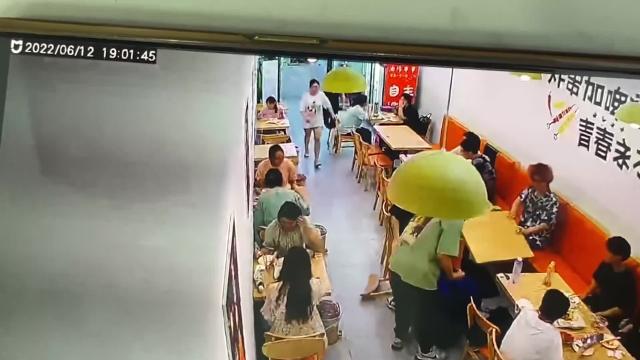 The university student was returning to his seat, but hilariously tripped on the tiles in the store in Haikou City, Hainan province on June 12. 2022-09-03 11:31:15