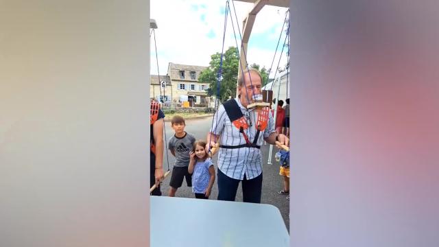 Video shows the merrymakers using strings - much like a puppeteer - to bring the alcohol-filled drinking glass to their lips without spilling anything during a festival in the Javols commune of Lozere on August 15. 2022-09-03 11:43:14