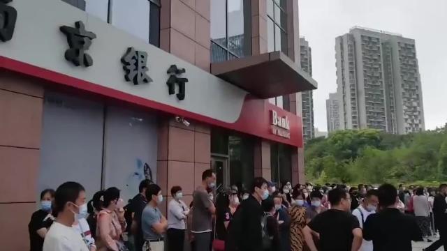 Footage shows the demonstrators chanting outside the Bank of Nanjing in Hangzhou City, Zhejiang province on Friday morning September 2. 2022-09-02 18:23:19