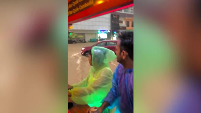 The young holidaymakers carrying cans of beer were riding a remorque during a tropical rainstorm as it ferried them through Siem Reap, Cambodia on September 2. 2022-09-03 09:56:58