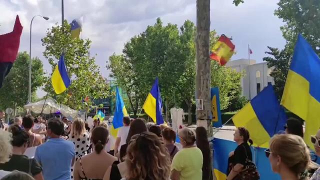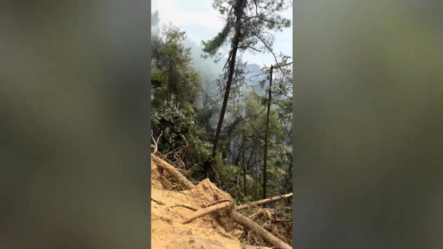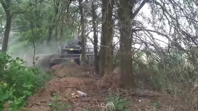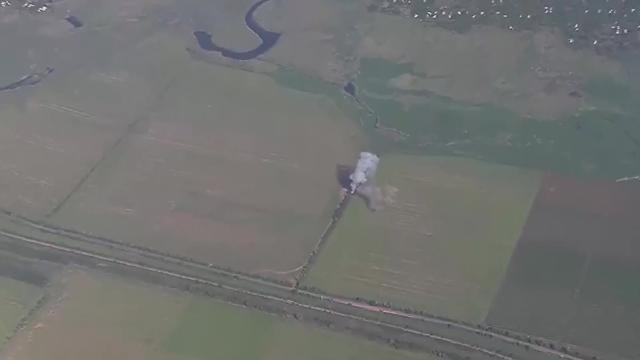 The footage, which appears to have been shot from a drone, shows flames burning among some trees running along the side of a field. The images then cut and appear to show a motionless soldier and some military equipment, but it is unclear if it is an M777 howitzer.