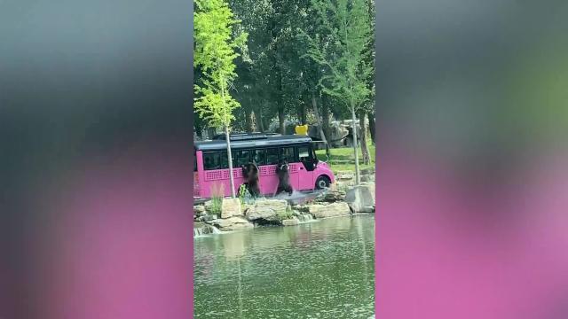 Footage shows the animals holding onto the transparent windows and skipping to keep up with the vehicle driving along the Beijing Wildlife Zoo on August 22. 2022-08-24 19:35:08