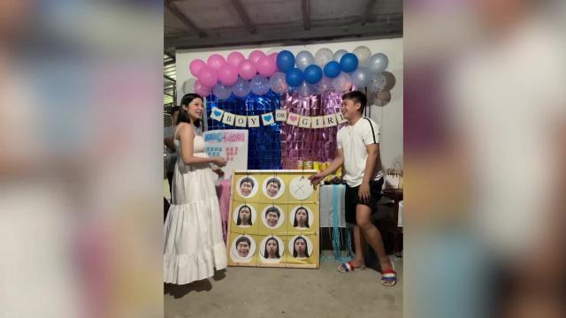 Video shows mum Jean Camille Roque and her husband Michael playing the unique gender reveal in front of excited guests at home in Metro Manila on August 23. 2022-08-24 19:39:01