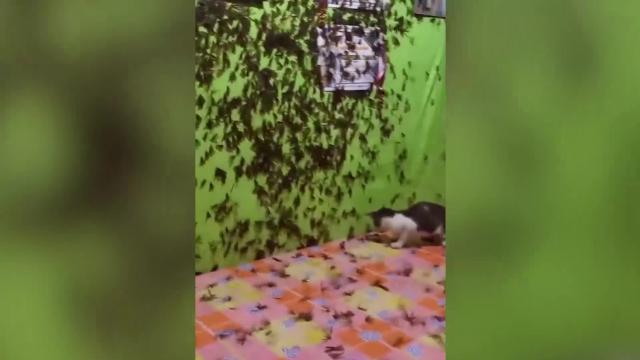Footage shows a little girl holding the moggie up to the bug army that had invaded the house in Tangub City, Misamis Occidental province on July 14. 2022-08-24 19:38:53