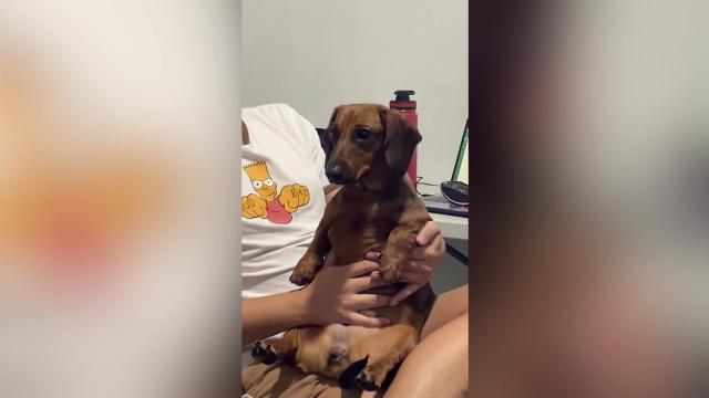 The Dachshund named Luna is seen tilting its head and furrowing its brows in confusion upon hearing the recorded cries of a child through a cellphone at home in Manila on February 11. 2022-08-24 19:35:19