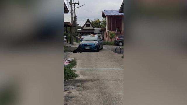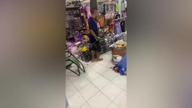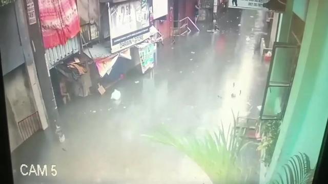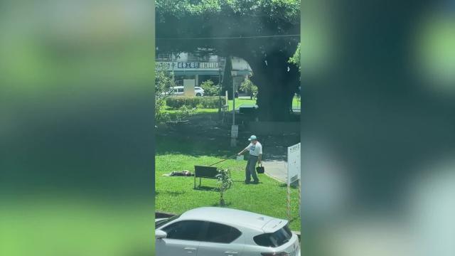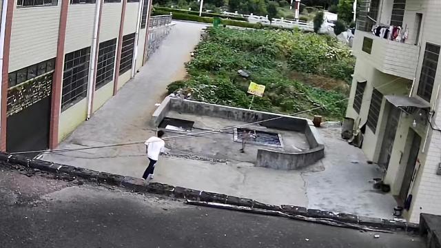 Footage shows what appeared to be a lamp spontaneously combusting in Hanzhong City, Shaanxi province on August 13. It sent out a wave of flames which visibly travels along a crack on the ground toward some blankets hanging on the clothesline.