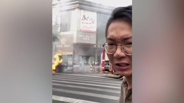 Footage shows flaming debris showering the automobile inside a mall in Wuhan City, Hubei province on August 17 while frantic staff sprayed the source of the fire with an extinguisher. 2022-08-19 13:53:35