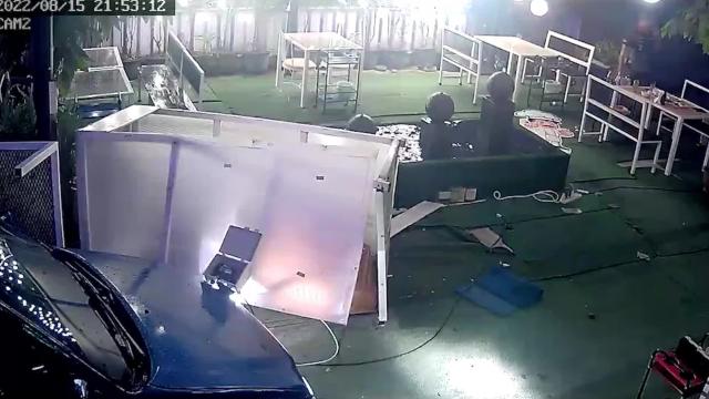 Shocking video shows a sedan plowing through the restaurant's iron fence before smashing into tables and chairs in Pathum Thani province on August 15 evening. The out-of-control vehicle barely missed a pair of customers who were eating their dinner. 2022-08-19 13:37:43