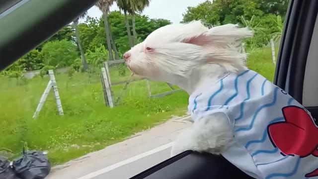 Video shows the female dog named Lucky pushing its paws up and down with excitement as she backs in the cool breeze in Chonburi province, Thailand on August 15. 2022-08-19 18:01:42
