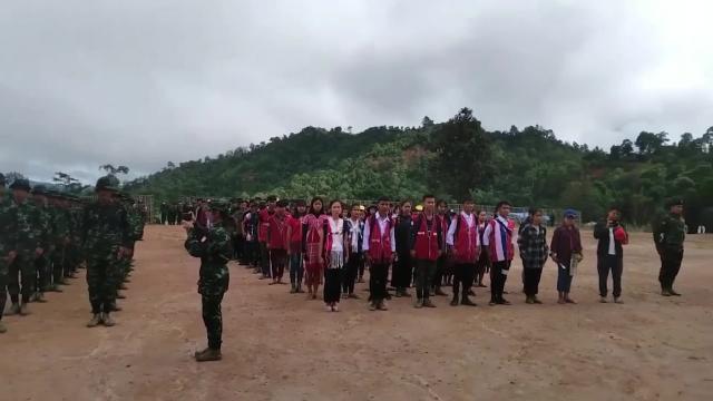 Footage shows a phalanx of soldiers reciting the message of Karenni State Chief of Staff General Bi Htoo at the Karenni National Progressive Party's (KNPP) headquarters in Thale Duso on August 17. 2022-08-19 14:42:24