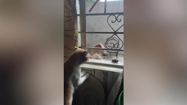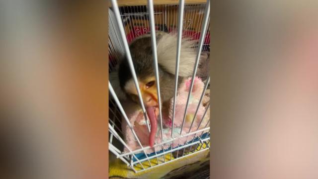 Footage shows the juvenile primate jumping around the property before perching on a fruit basket in Chiang Mai province, Thailand on April 1. 2022-08-12 17:40:43