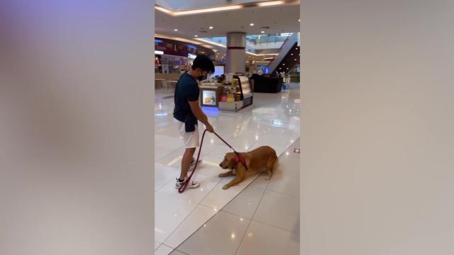 Footage shows the pooch lying on the floor after walking for a while on May 21. His owner had to carry him up the escalator afterwards. 2022-08-12 18:05:45