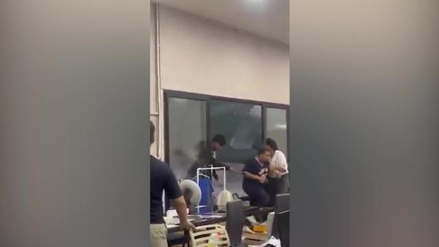 The inclement weather battered the building in Kamphaeng Phet province while employees were going about business as usual on June 16. 2022-08-13 09:30:49