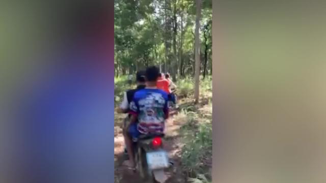 Sibling rescuers Montree Phiewphong and his brother Apichart carried the corpse of villager Leuang Chodkasem, 73, on August 14 after he allegedly fell to his death while picking fruits in a forest in Nakhon Ratchasima province the night before. 2022-08-15 13:26:14