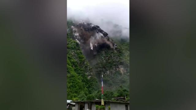 Footage shows a portion of the mountain breaking away before pulling swathes of the hillside with it. Spectacular footage captured the landslide roaring to earth and covering a part of a village in the Himalayas on March 19.