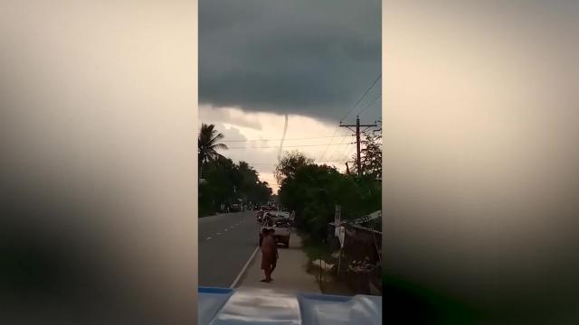 Footage shows the long thread-like weather phenomenon extending from the massive rain clouds above to the sea below in Cagayan province on July 28. 2022-08-09 09:20:50