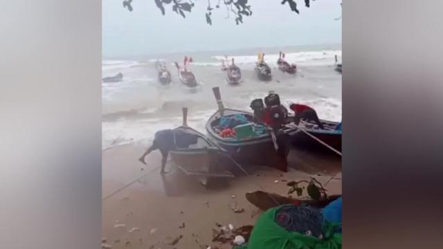 Footage shows gusty winds whipping up the waves near the shore of the Koh Lanta District in Krabi province on August 1. The rough waters reportedly sank around 20 boats while local fishermen pulled the rest of the vessels onto dry land.