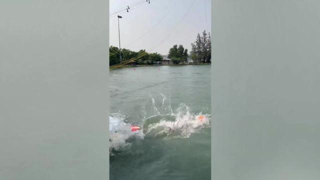 Video shows college student Kristina Ostapenko slamming on her first attempt at the extreme watersport at the Thai Wake Park in Pattaya, Thailand, on April 21. 2022-08-01 17:05:38