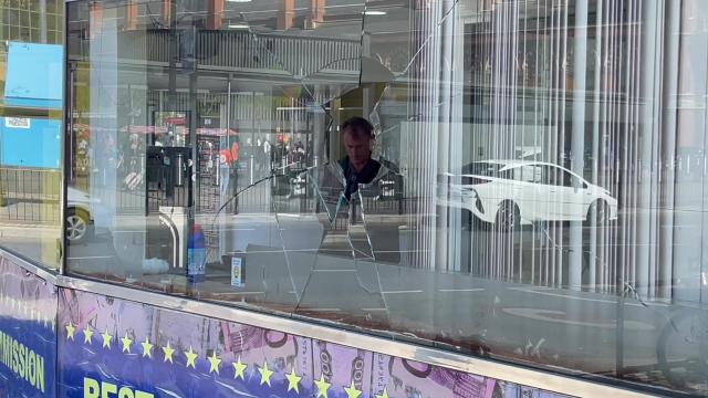 A rock appeared to have been hurled through the building the evening before, leaving a large hole and fragments of glass inside the business on Euston Road. 2022-08-01 17:03:01