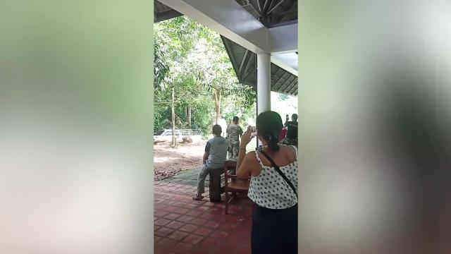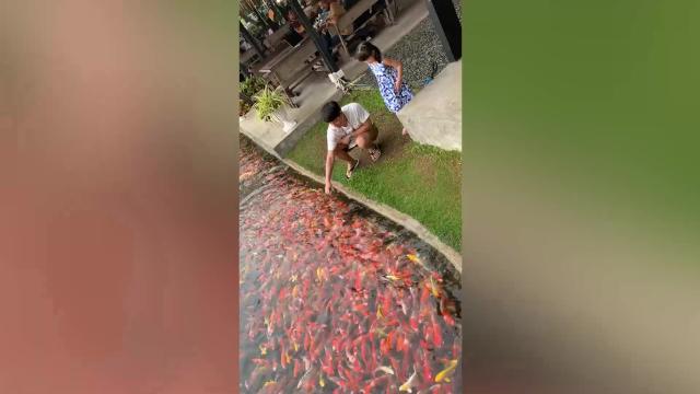 Video shows a scared little girl quickly backing away while feeding the ravenous creatures with her father at a restaurant in Pattaya, Thailand on May 7. 2022-07-30 17:24:18