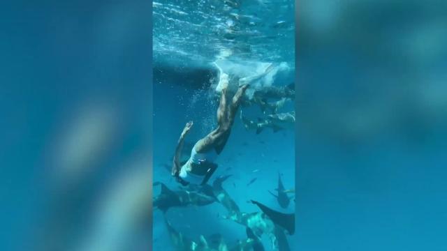 Pim Chonlada swam with the majestic marine creatures in the clear blue tropical sea around Fulidhoo island on her vacation on May 8. She then donned a snorkel to go free diving. 2022-07-30 17:24:05